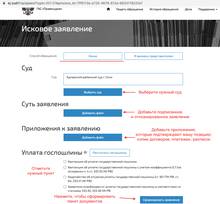 ГАС Правосудие – это единая информационная система, позволяющая взаимодействовать с судами всех уровней. На стартовой странице портала вы сможете выбрать судебный орган через форму поиска — по названию, по региону и городу, на карте. Выбрав суд, можно перейти на онлайн-сервис и приступить к заполнению формы.