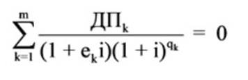 ek — срок, выраженный в долях базового периода, с момента завершения qkqk-го базового периода до даты k-го денежного потока;